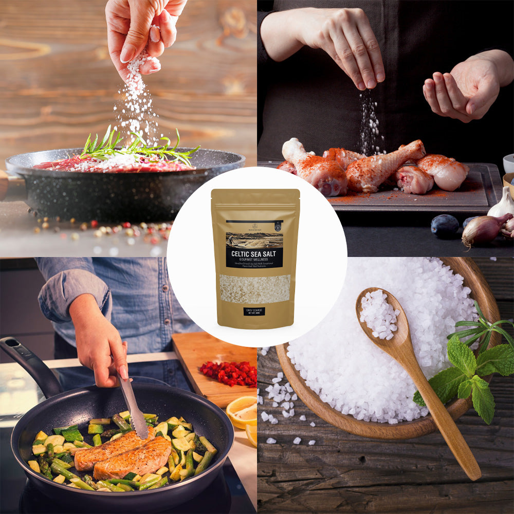 La sal celta es valorada por su alto contenido de minerales traza y su menor concentración de cloruro de sodio en comparación con la sal de mesa normal. Puede ayudar a mantener un equilibrio adecuado de líquidos y pH en el cuerpo, mejorando el sabor de los platos sin salar en exceso y favoreciendo la salud general.
